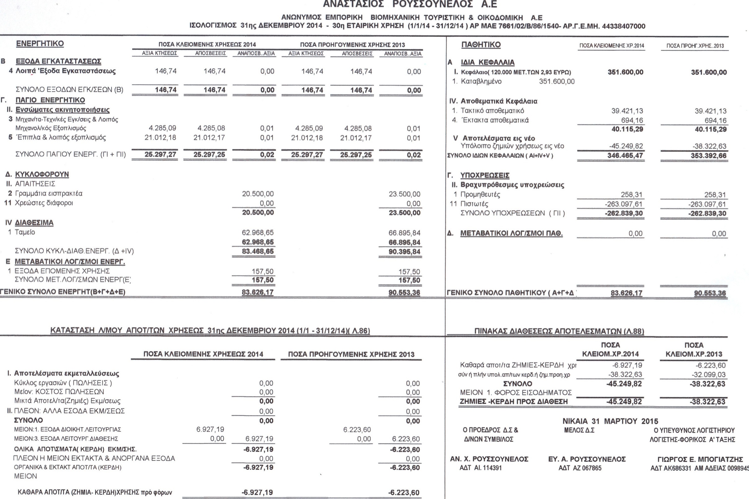 ΕΠΩΝΥΜΙΑ : ΑΝΑΣΤΑΣΙΟΣ ΡΟΥΣΣΟΥΝΕΛΟΣ ΑΝΩΝ ΕΜΠ ΒΙΟΜΚΗ ΤΟΥΡΚΗ ΟΙΚΟΔΟΜΙΚΗ - Α.ΡΟΥΣΣΟΥΝΕΛΟΣ ΑΕ